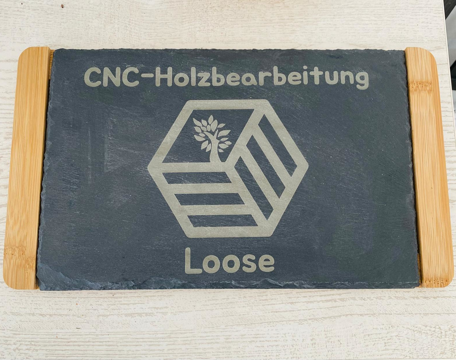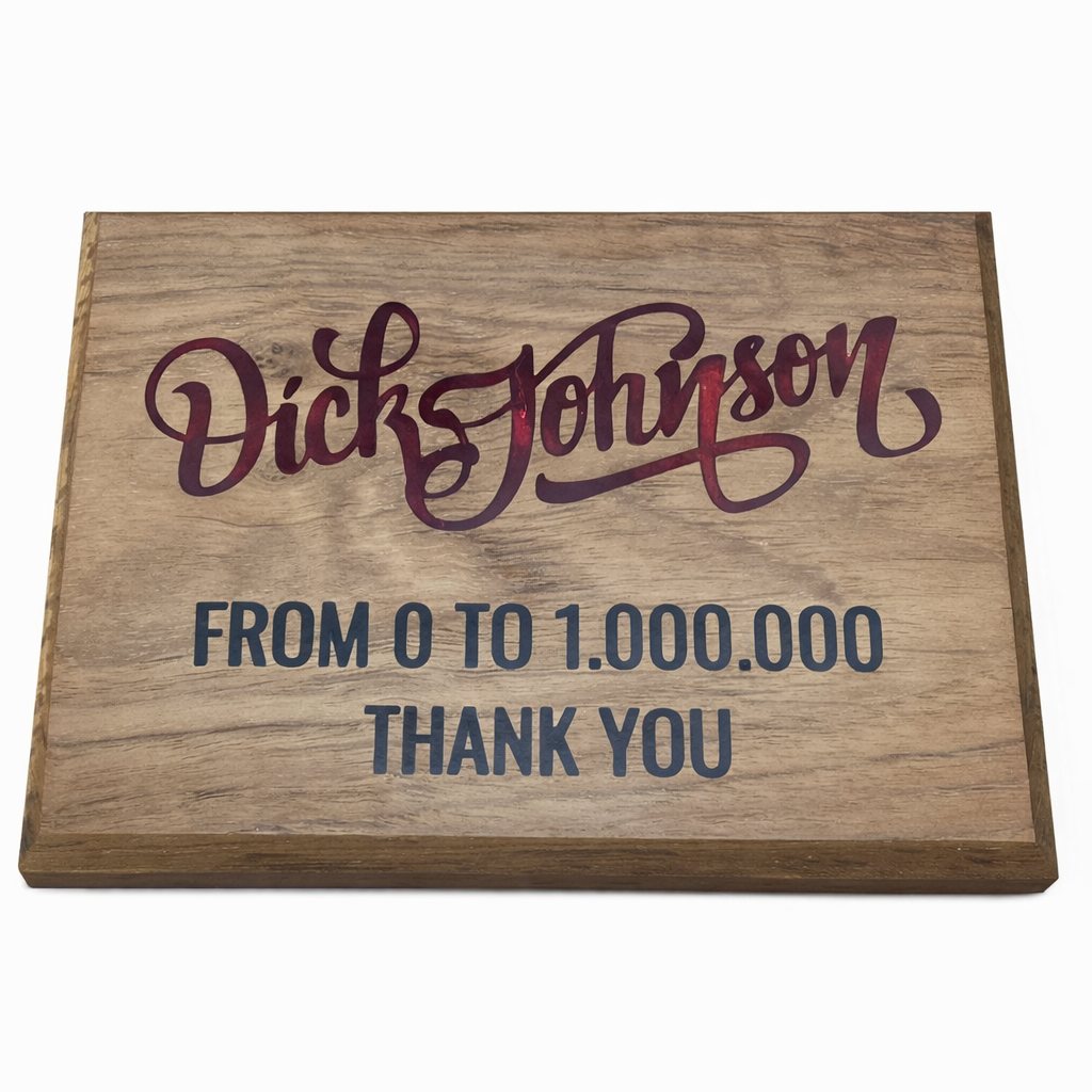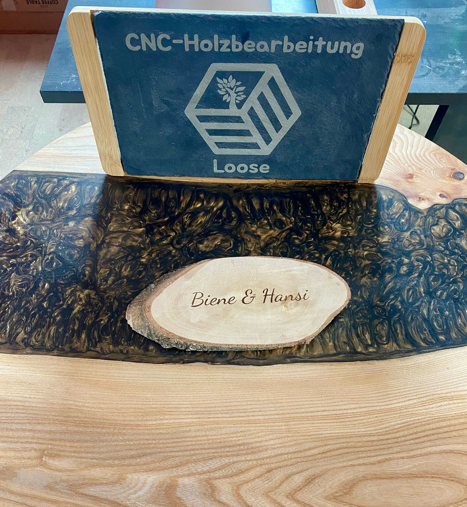 Verschiedenste Formate, Texte, Schriftarten, Motive und sogar beleuchtete Epoxidharzelemente möglich.